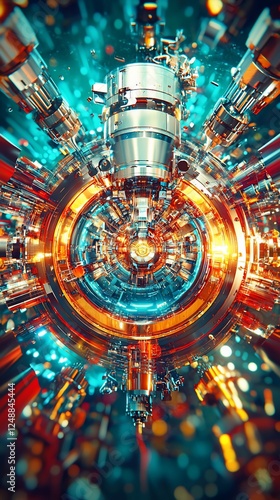 Obraz premium Abstract futuristic machine, complex gears, vibrant colors, dynamic composition