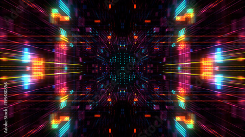 Naklejka premium Abstract futuristic sci fi warp tunnel with particle grid. Graphic for data...