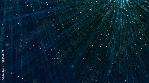 © Tetiana, Naklejka premium Abstract futuristic space rain. Mystical universe banner. Sparkling blue threads curtain. Magic glitter rain. Big data. 3D rendering.