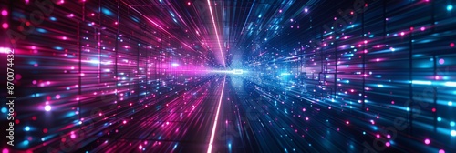 © Palung, Naklejka premium Abstract futuristic technology abstract background with lines for network, big data, data center, server, internet, speed. dark blue and pink neon lights into digital technology tunnel