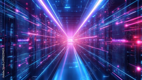 © Johannes, Fototapeta premium Abstract futuristic technology background network high speed global data transfer, big data, data center, server, internet, speed. dark blue and pink neon lights