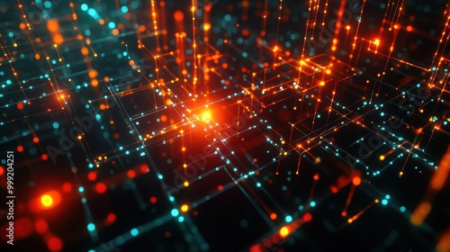 Naklejka premium Abstract Futuristic Technology Background with Glowing Lines and Points.