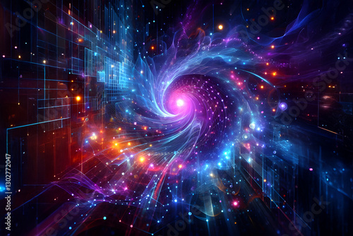 © Ai .stocker, Fototapeta premium Abstract futuristic - technology Design digital Artificial intelligence. Science background. Big data circuit board texture background design. Waves flow. Quantum .technology concept. 3d illustration.