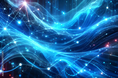 © Ai .stocker, Fototapeta premium Abstract futuristic - technology Design digital Artificial intelligence. Science background. Big data circuit board texture background design. Waves flow. Quantum .technology concept. 3d illustration.