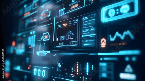 © KALEYA, Obraz premium Abstract Futuristic Technology Interface Background - 3D Render