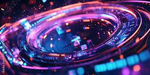 Obraz premium Abstract Futuristic Technology Interface: Neon Glow and Digital Elements