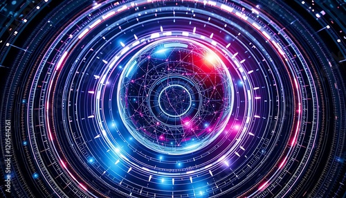 © Ronald, Obraz premium Abstract Futuristic Technology Sphere Rotating Within Concentric Circles