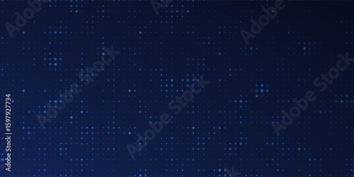 © Alfin, Obraz premium Abstract futuristic technology square pattern with glowing lights, square elements on dark blue background.