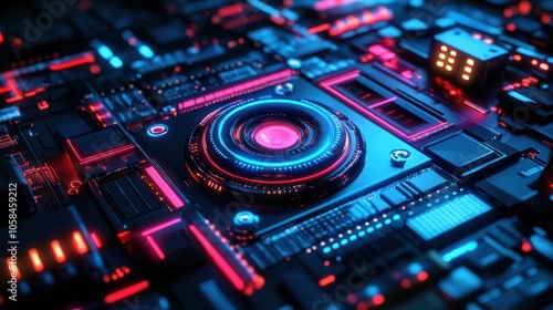 © Johannes, Obraz premium Abstract futuristic - technology with polygonal shapes on dark blue background. Design digital technology concept. 3d illustration.