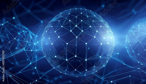 © Thestudio, Fototapeta premium Abstract futuristic - technology with polygonal shapes on dark blue background. Design digital technology concept. 3d illustration.