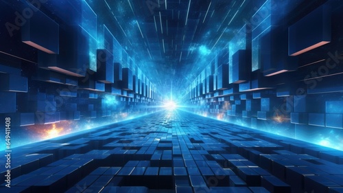 Obraz premium Abstract futuristic tunnel made of blue metallic cubes