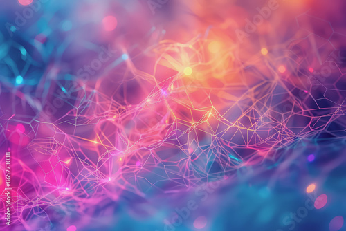 © PHAISITSAWAN, Obraz premium Abstract futuristic wave with colorful lines connecting dots. digital data communication background.