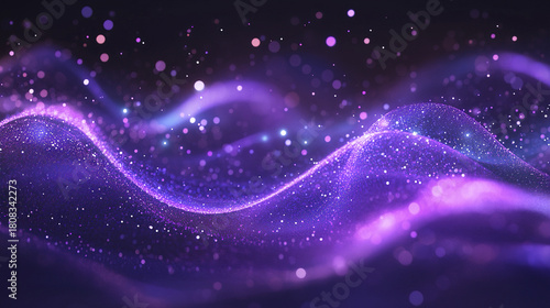 Obraz premium Abstract futuristic waves in deep purple hues with glowing particles