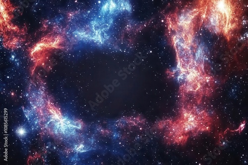 © Vekin, Naklejka premium Abstract galaxy pattern with blank center, perfect for text or logos, space graphic, celestial inspiration