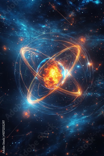 Obraz premium Abstract Galaxy Space Planet with Blue and Orange Light Streaks and Stars