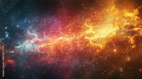 Naklejka premium Abstract galaxy with orange, red and blue hues with light, sparkling stars....