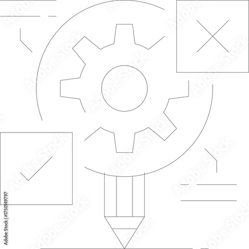 © ahmad, Obraz premium Abstract Gear Mechanism With Dotted Lines On A Transparent Background Representing Industry And Engineering Concepts