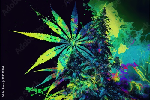 Obraz premium Abstract generative ai illustration graphic marijuana cannabis leaf pile for...