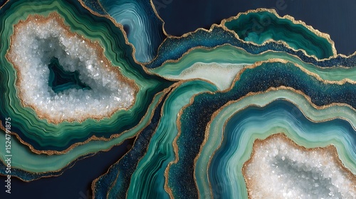Obraz premium Abstract geode design in teal, green, and gold with crystal formations for...