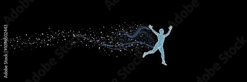 © Pimchada, Fototapeta premium Abstract geometric art of human jumping with lines and dots, vector illustration, line, moving, jumping