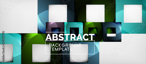 © antishock, Fototapeta premium Abstract geometric background. Glossy square shapes composition on grey, minimalistic style template with copyspace
