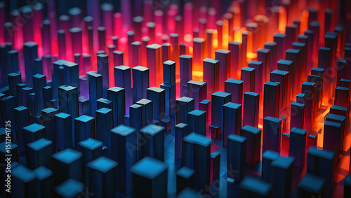 © MstJorina, Obraz premium Abstract geometric background with blue, red, and purple cubes arrangement