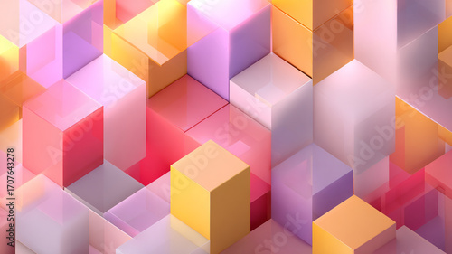 © Yuwarin, Obraz premium Abstract geometric background with 3D cubes