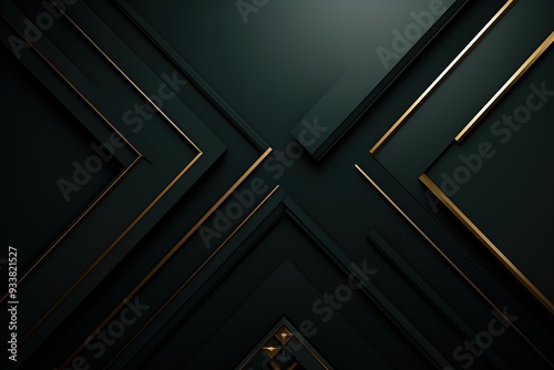 Obraz premium Abstract geometric background with dark green and gold accents.