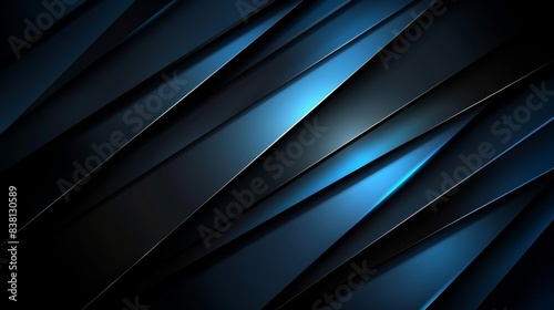 © Ponchita, Obraz premium Abstract geometric background with diagonal blue and black stripes for modern technology designs, digital presentations, and website layouts.