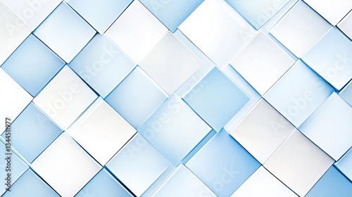 © huhu, Fototapeta premium Abstract geometric background with light blue and white squares in diagonal pattern.