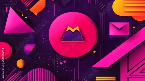 © fledermausstudio, Obraz premium Abstract Geometric Background with Pink Purple and Yellow Shapes