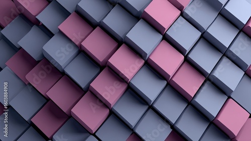 © JSR, Fototapeta premium Abstract Geometric Background with Purple and Gray Cubes 3D Render