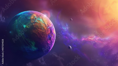 © nataliia_ptashka, Obraz premium Abstract geometric background with triangles and planets in space