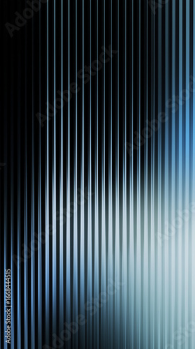 © Furkan, Obraz premium Abstract Geometric Background with Vertical Ribbed Glass Effect and Soft Blue Gradient Glow. Elegant Modern Design For Branding. Vertical