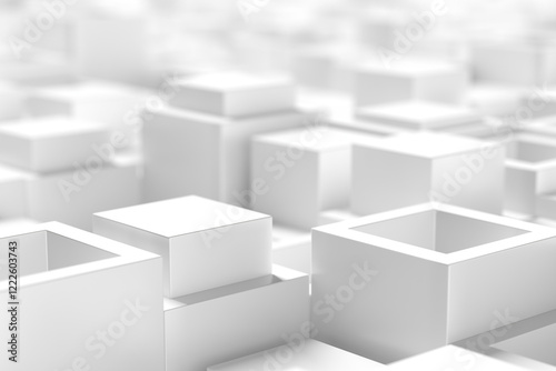 Fototapeta premium Abstract geometric background with white cubes in a minimalist design. 3d render