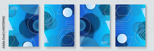 © SyahCreation, Naklejka premium Abstract geometric backgrounds. Neo geo pattern, minimalist retro poster graphics vector illustration set. Abstract pattern trendy with square and round colored