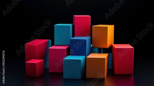 Obraz premium Abstract geometric blocks on black background, 3d render