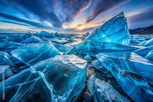 © chaowalit, Obraz premium Abstract Geometric Blue Ice Long Exposure Background