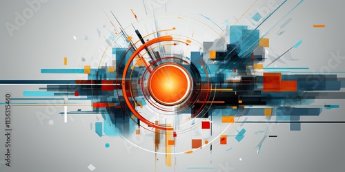 © Graphic Warrior, Obraz premium Abstract geometric circles optical backgrop sci fi tech focus