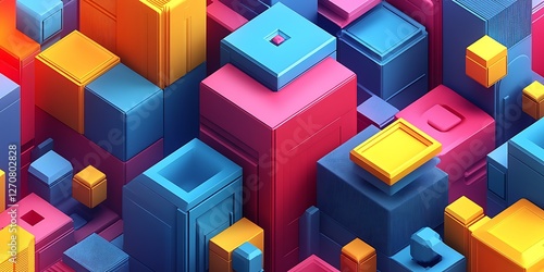 © Ruqqq, Obraz premium Abstract Geometric Cityscape. Colorful Blocks. Background. Digital Art