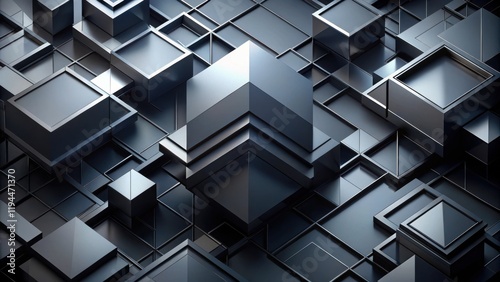 Obraz premium Abstract Geometric Composition Featuring a Stack of Metallic Cubes with Sharp...