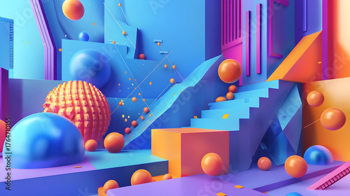 © Trending AI Pics, Obraz premium Abstract geometric composition, isolated on white background