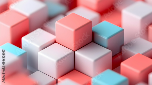 Obraz premium Abstract Geometric Composition of Coral Pink White and Blue Cubes