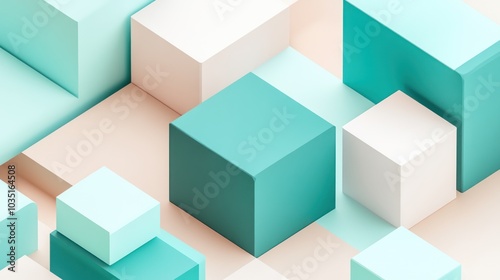 © Muamanah, Obraz premium Abstract Geometric Composition of Interlocking Pastel Cubes