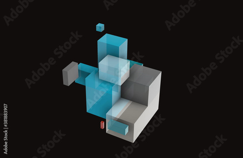 Obraz premium Abstract geometric composition on a black background, 3D