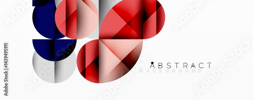 Obraz premium Abstract geometric composition. Overlapping circles, triangles create modern design. Red, navy, pale pink hues dominate. Minimalist aesthetic.