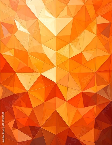 Obraz premium Abstract geometric composition, predominantly orange and yellow triangles...