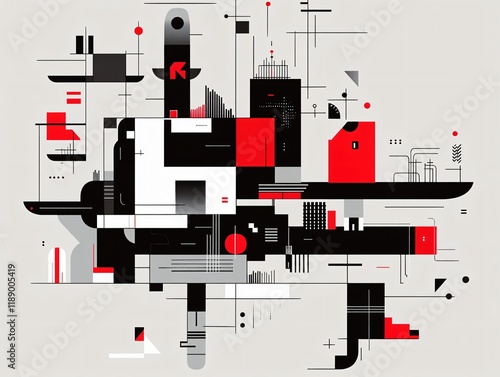 Obraz premium Abstract Geometric Composition Red Black White Modern Art