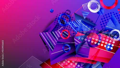Fototapeta premium Abstract geometric composition. Vibrant purple, blue, red hues dominate....
