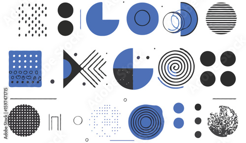 Fototapeta premium Abstract Geometric Composition with Circles, Lines, and Dots in Varied...